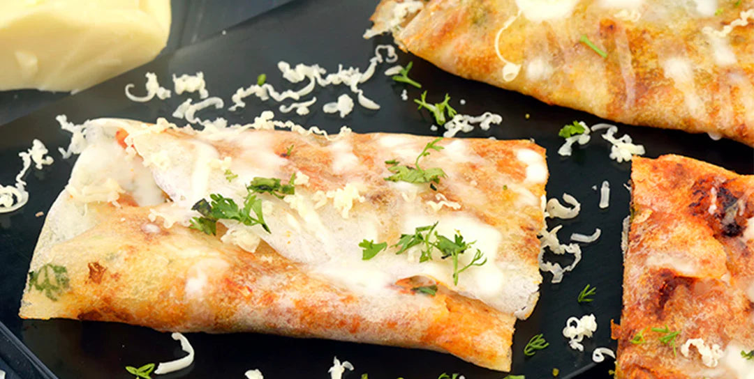Melting cheese oozing out of crispy dosa makes this a kid-friendly favorite and a modern café-style indulgence.