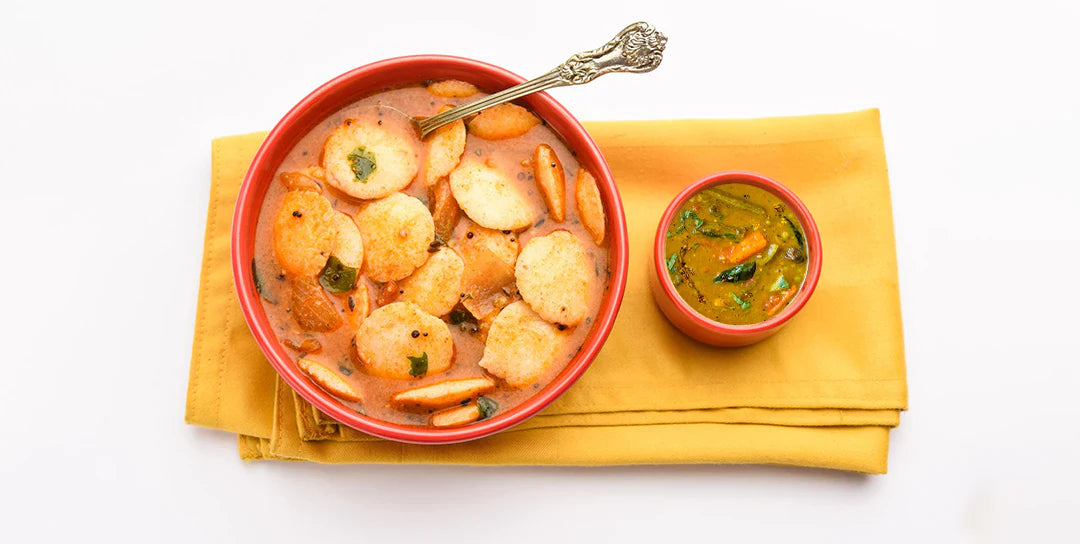 - 1 Cup mini idlis (made from Thaayar idli batter)