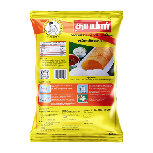 We founded Thaayar in 1997 with one dream - to ensure that everyone has access to fresh, nutritious & delicious Indian tiffins. Nothing compares to mom's cooking, and that's what we've tried to preserve with every packet of batter that reaches your home.